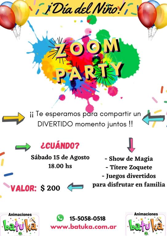 DIA DEL NI?O ZOOM PARTY SHOWS DIVERTIDOS 155058051MAGIA INFANTIL TITERESJUEGOS DIVERTIDOS VALOR $200 SE ABONA POR CUALQUIER MEDIO DE PAGO