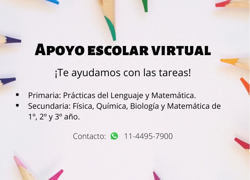 Se da clases por zoom, meet o whatsapp. Puede ser apoyo para tareas espec?ficas o explicaci?n de uno o varios temas, eso es seg?n lo que necesite el alumno.