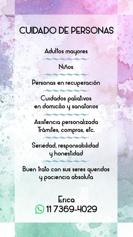 Cuidado de adultos mayores, ni?os, personas en recuperaci?n/cuidados paliativos; en domicilio y sanatorios