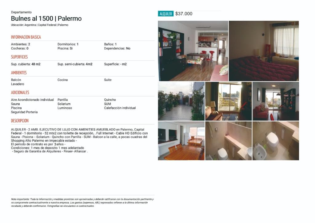 Dos ambientes de 52 metros espectacular alquiler amueblado o vac?o con toilette de recepci?n y ba?o completo. Balc?n a la calle a 4 cuadras del shopping Alto Palermo con SUM, pileta, sauna y ?reas de esparcimiento