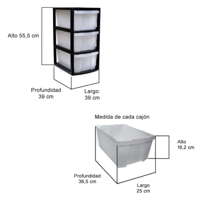 Torre Cajonera con 3 cajones Grandes. Alto de caj?n: 16 cm.