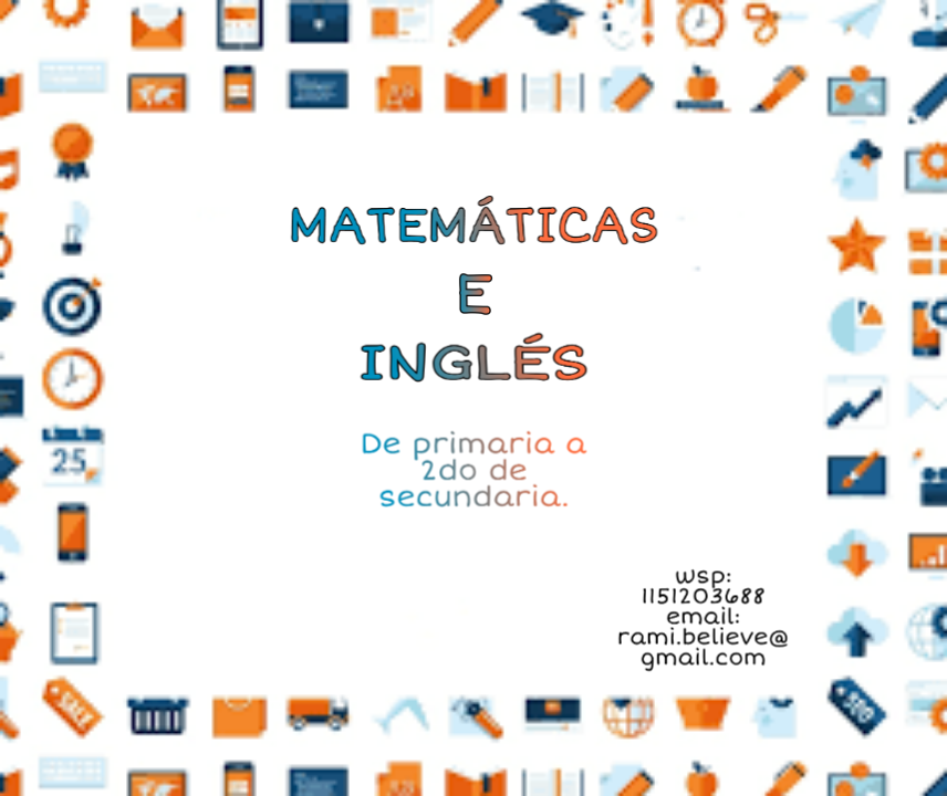 Particular de matem?ticas e Inglés de primaria a 2do a?o de secundaria, para la explicaci?n se puede mediante videollamada, llamada o simplemente mensajes y audios, también se puede solo realizar la tarea y enviarla completa, ser?an $100 extra, a decisi?n de usted mismo.