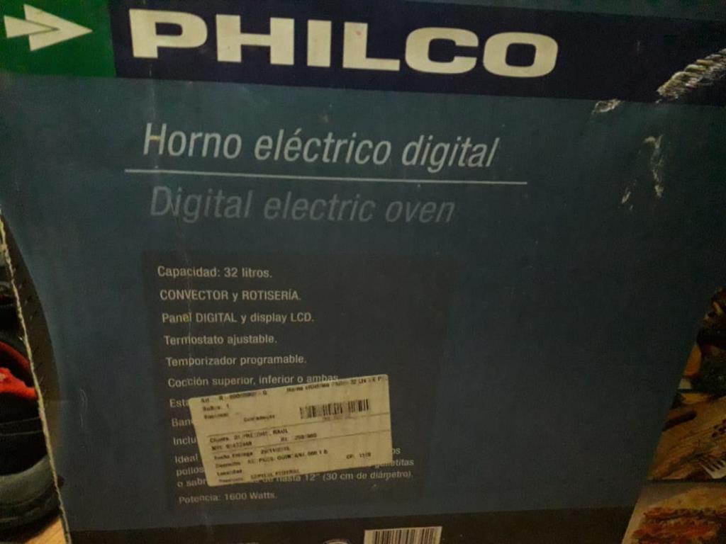 EN CAJA CERRADA SIN USO HORNO ELECTRICO DIGITALCON CONVECCION 16 W MARCA PHILCO 32 L MOD. HE-PH 32