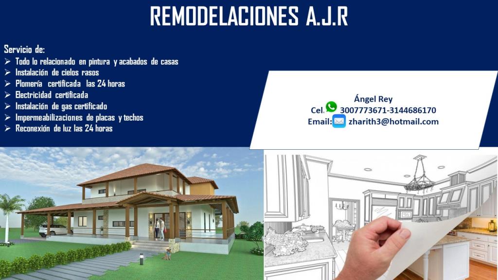 Servicio de:Todo lo relacionado en pintura y acabados de casasInstalaci?n de cielos rasosPlomer?a certificada las 24 horas Electricidad certificadaInstalaci?n de gas certificadoImpermeabilizaciones de placas y techos Reconexi?n de luz las 24 horas