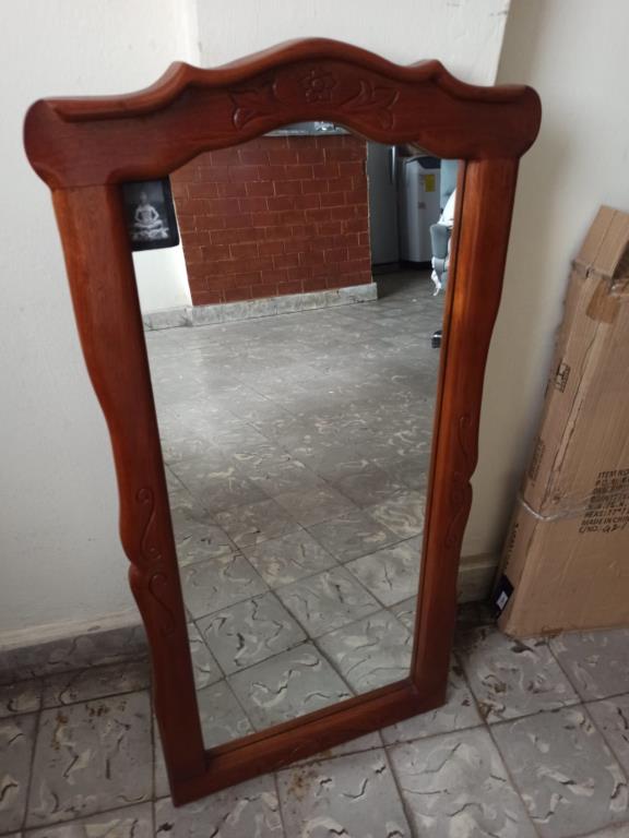 Espejo con marco de madera autentica, tallada con motivos decorativos, en perfectas condiciones.